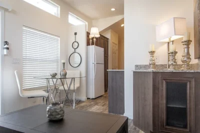 The open layout, combined with vaulted ceilings, creates a bright and spacious interior. Even at 399 sq ft, it feels open and comfortable.